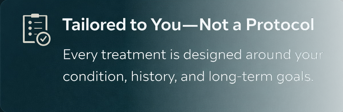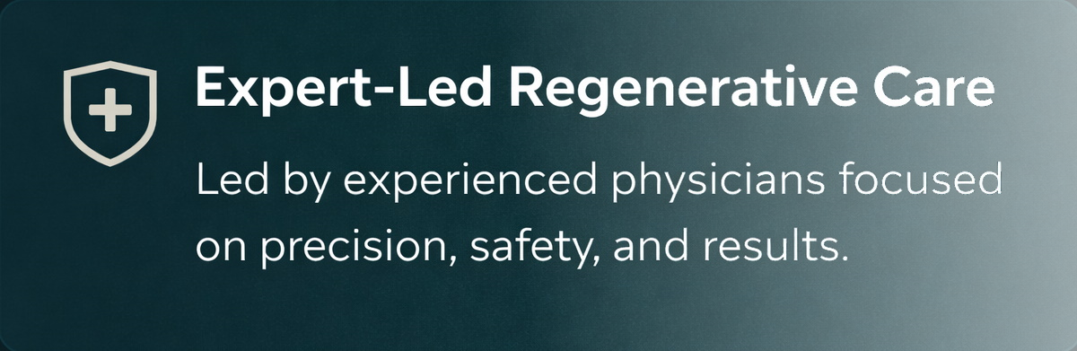 Our team takes a comprehensive and patient-centered approach to care, combining medical expertise with advanced regenerative science. Every treatment plan is developed with precision, taking into account your condition, history, and long-term goals — ensuring a thoughtful and effective path toward recovery, resilience, and sustained well-being.